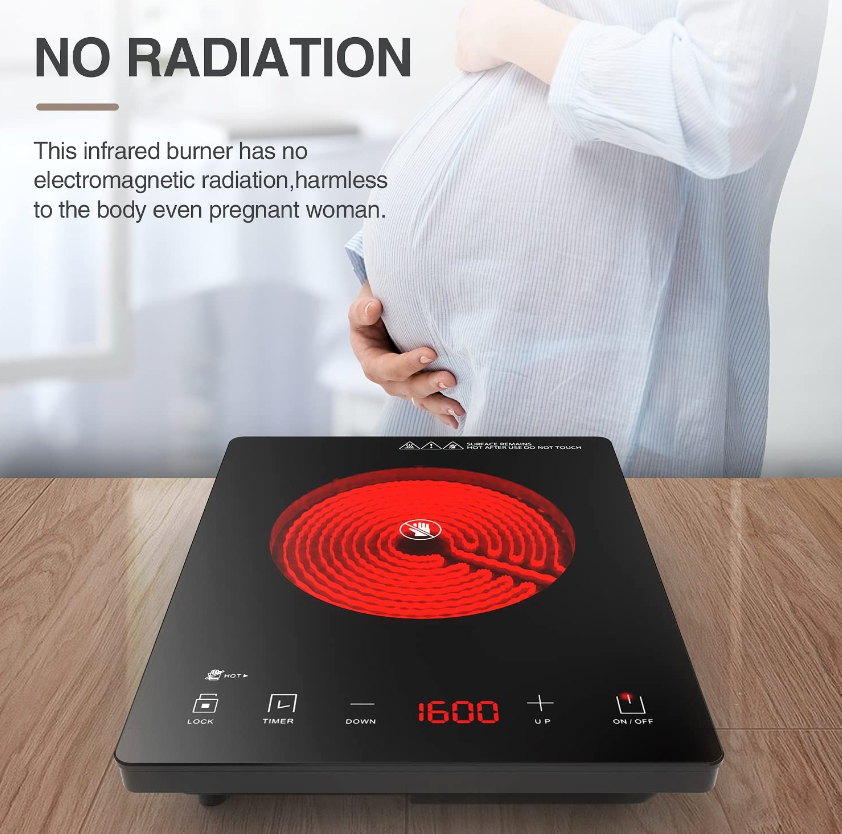 • 【Healthy&Safe】Infrared Burner has no electromagnetic high-level radiation, and it can be safely used by pregnant women and the elderly.Moreover, Infrared Burner is used for heating and cooking, and there is no open fire and no oil smoke, so as to reduce the harm to human body and reduce the occurrence of fire.Creating a healthy and safe kitchen environment for you.