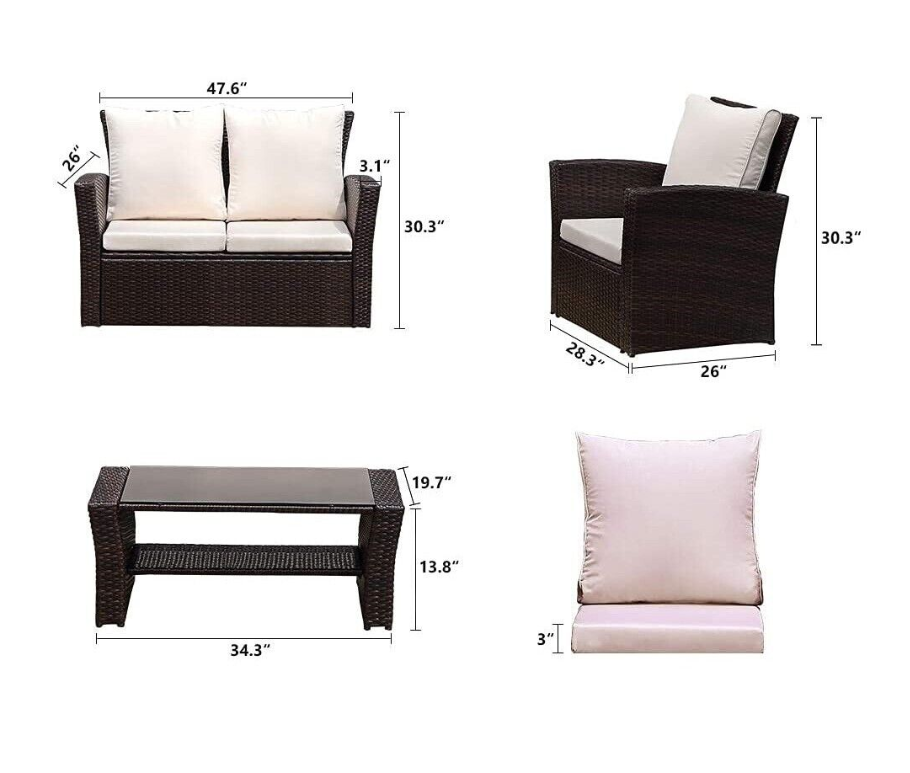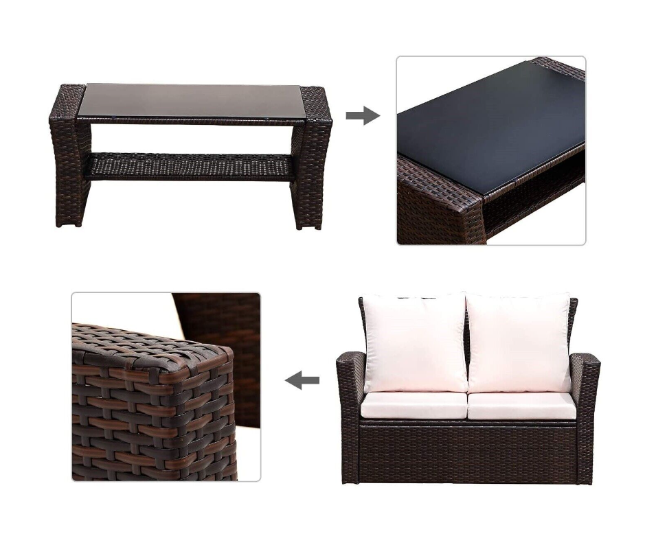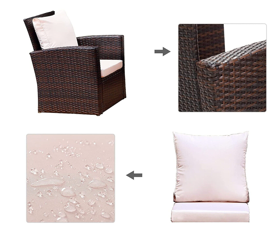 This patio furniture set is made of sturdy steel frame and hand woven PE rattan wicker.