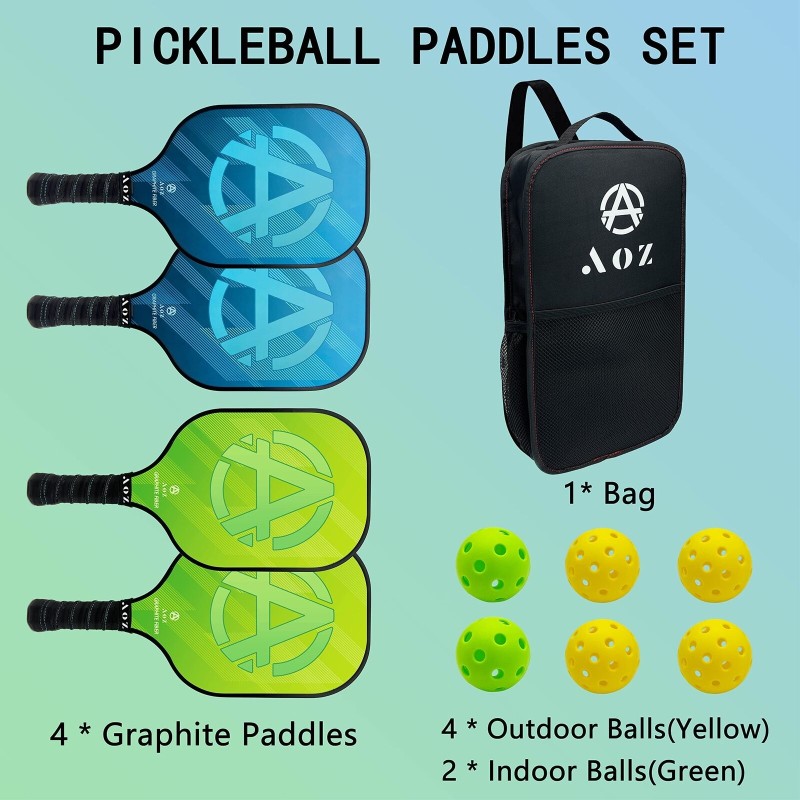 AOZINTL Pickleball Paddles Set of 4, Graphite Face Pickleball Paddles with Honeycomb Core and Premium Comfort Grip, Equipment with 6 Balls, Pickle-Ball Racquet with1 Portable Bag for Men and Women