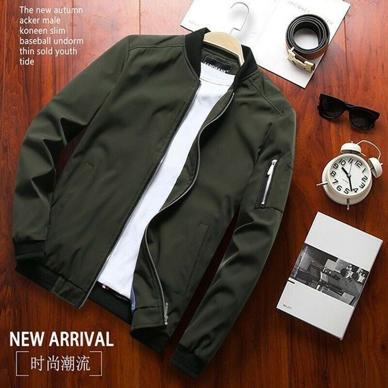 Bomber New Jacket Lightweight Flight Casual Zipper Solid Baseball Men Thin Coat