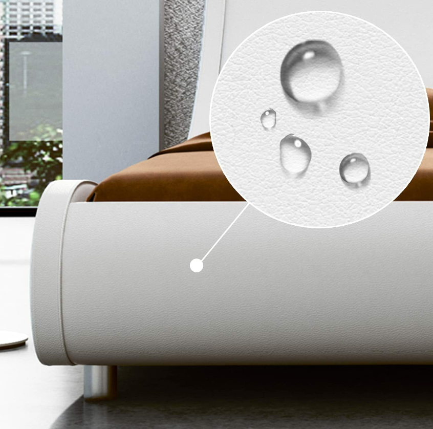 【Bedroom Refresh】 Wave-like silhouette of Our low profile bed is one of a kind addition to any contemporary bedroom. This upholstered platform bed is fully wrapped in soft PU leather for ultimate comfort and looks, and features a slatted base.
