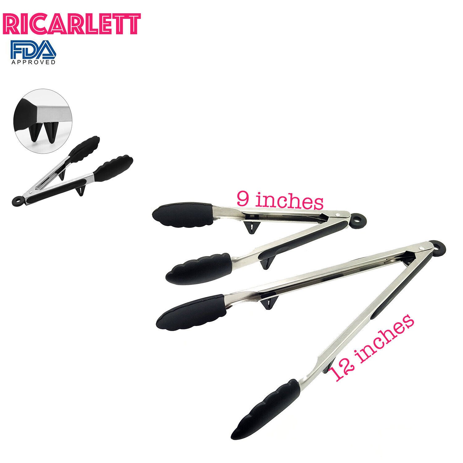 • 【HIGH QUALITY】These food tongs are designed with one piece non-detachable heads for easy cleaning and the silicone tips is also healthy for life. The silicone coated heads are BPA free and approved by FDA, non-stick friendly to protect your cookware.