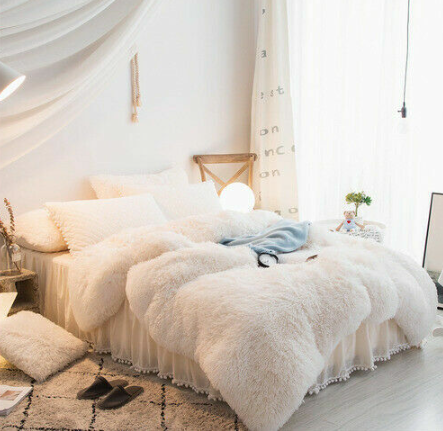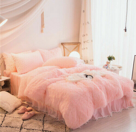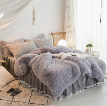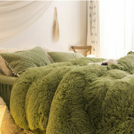 Luxury fruit green plush fluffy mink velvet duvet cover Qui stitched bedding set