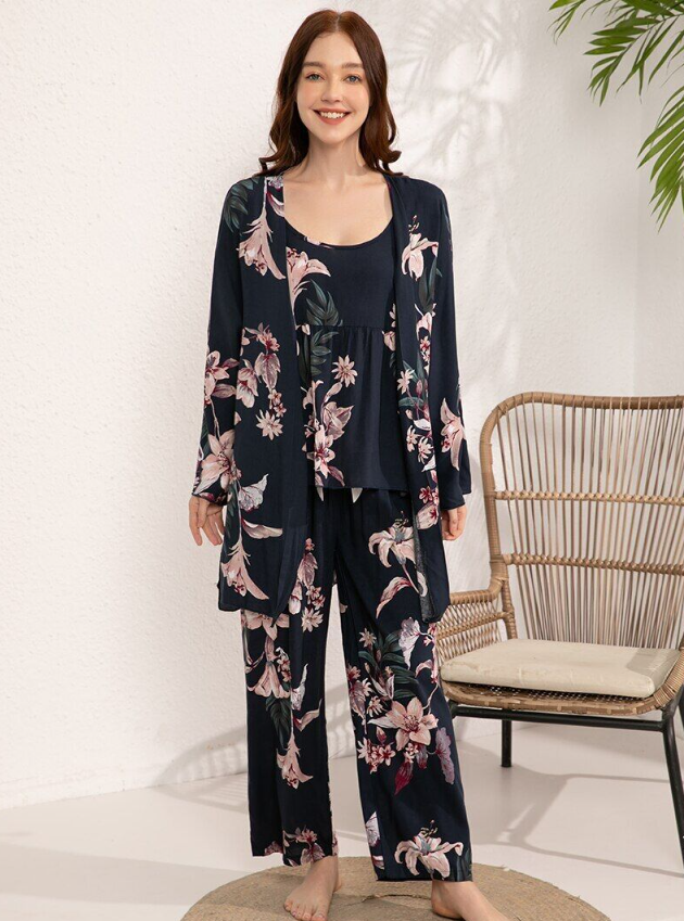 Plus Size S-3XL Women's Pajamas Set 100% Viscose Set Sleepwear Printed Nightwear