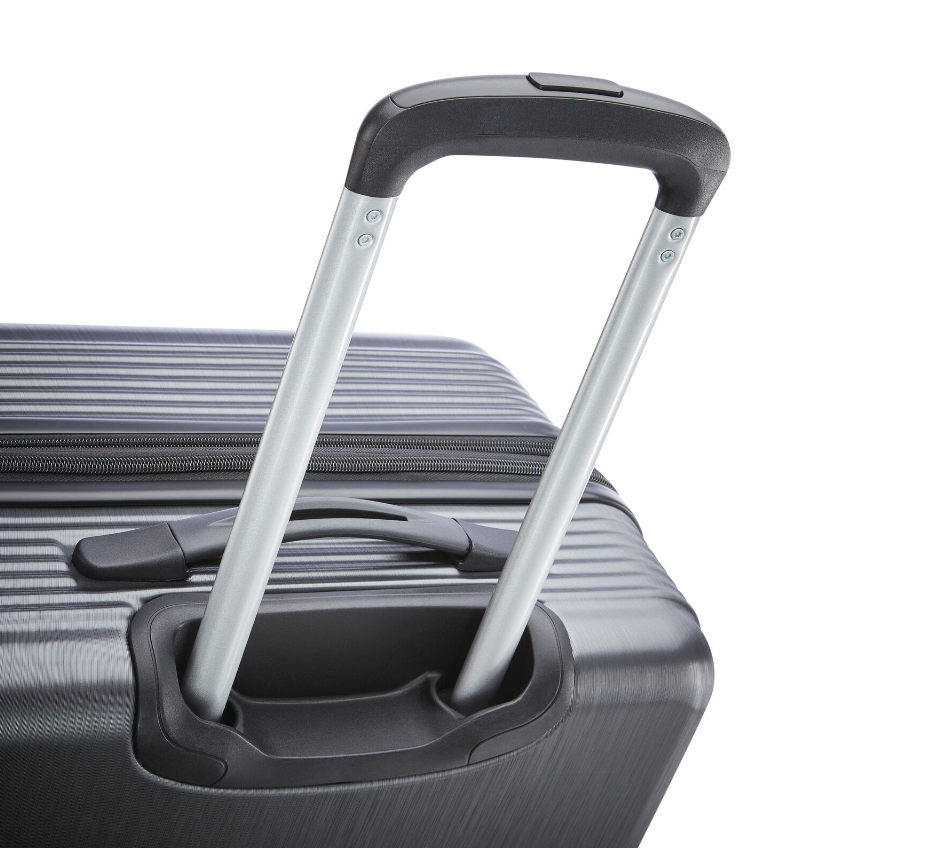 • Push button multi stage handle system with retractable top and side carry handles