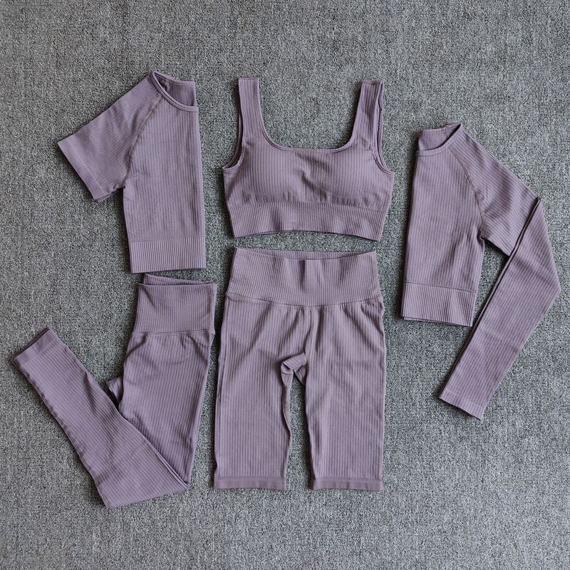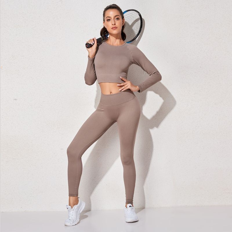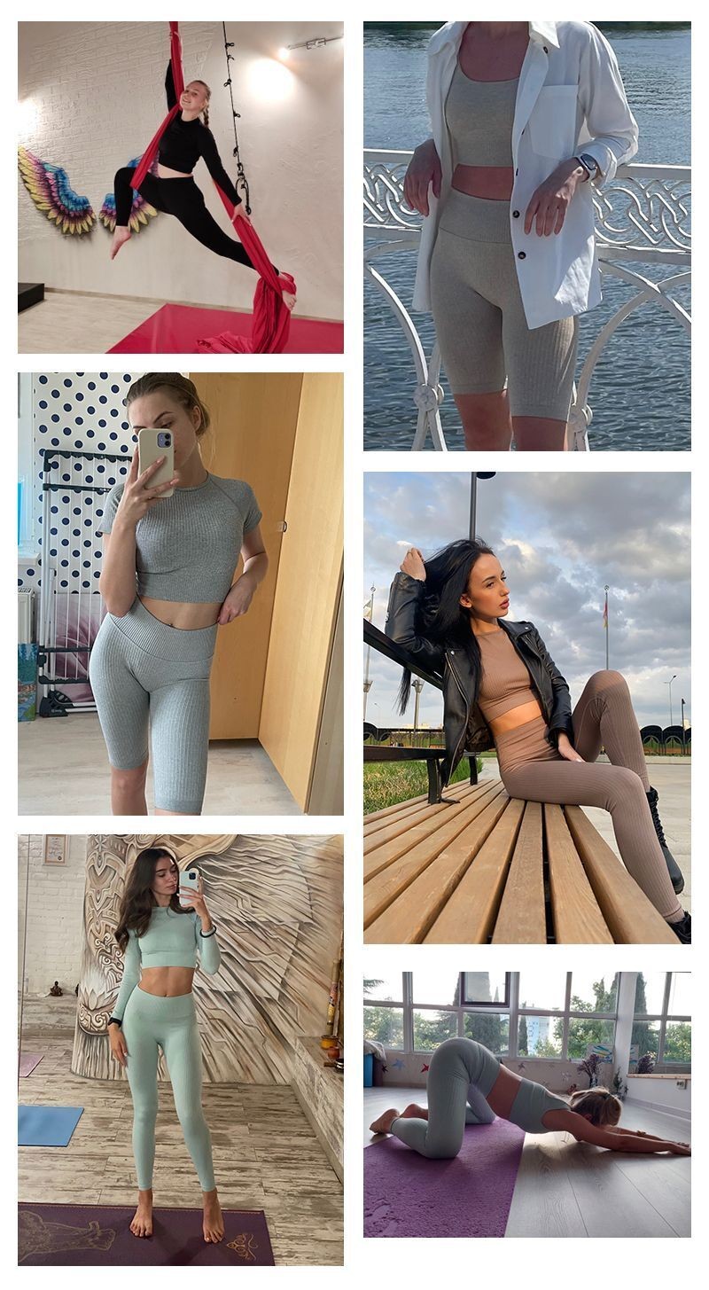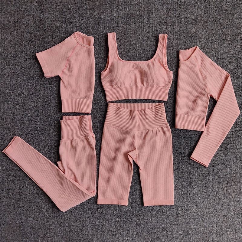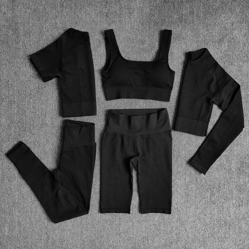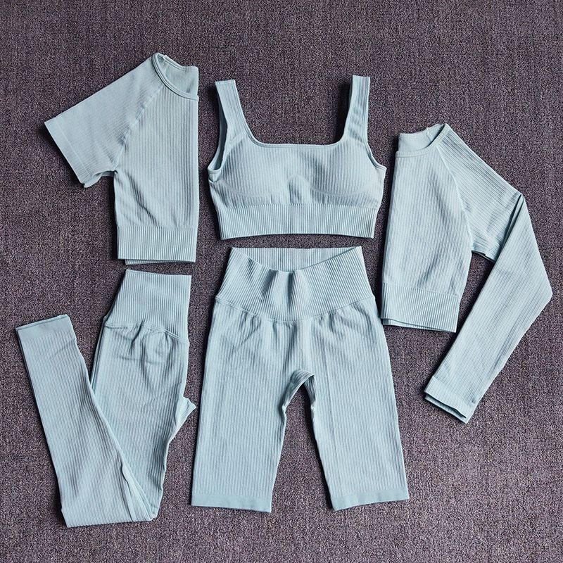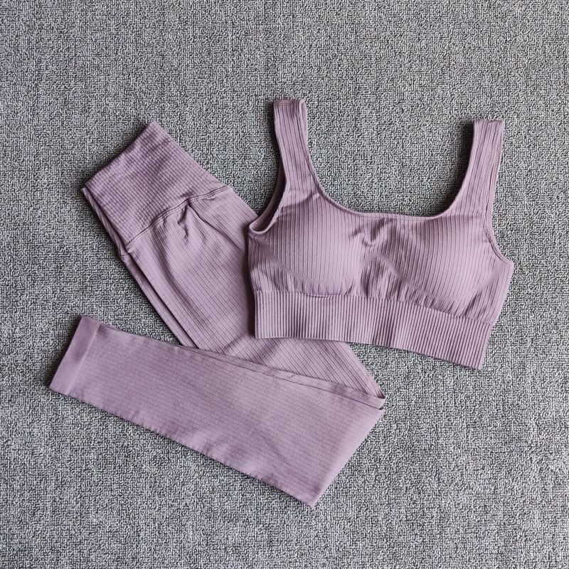 Seamless Women Yoga Set Workout Athletic Solid Gym Legging Fitness Bra Crop Tops