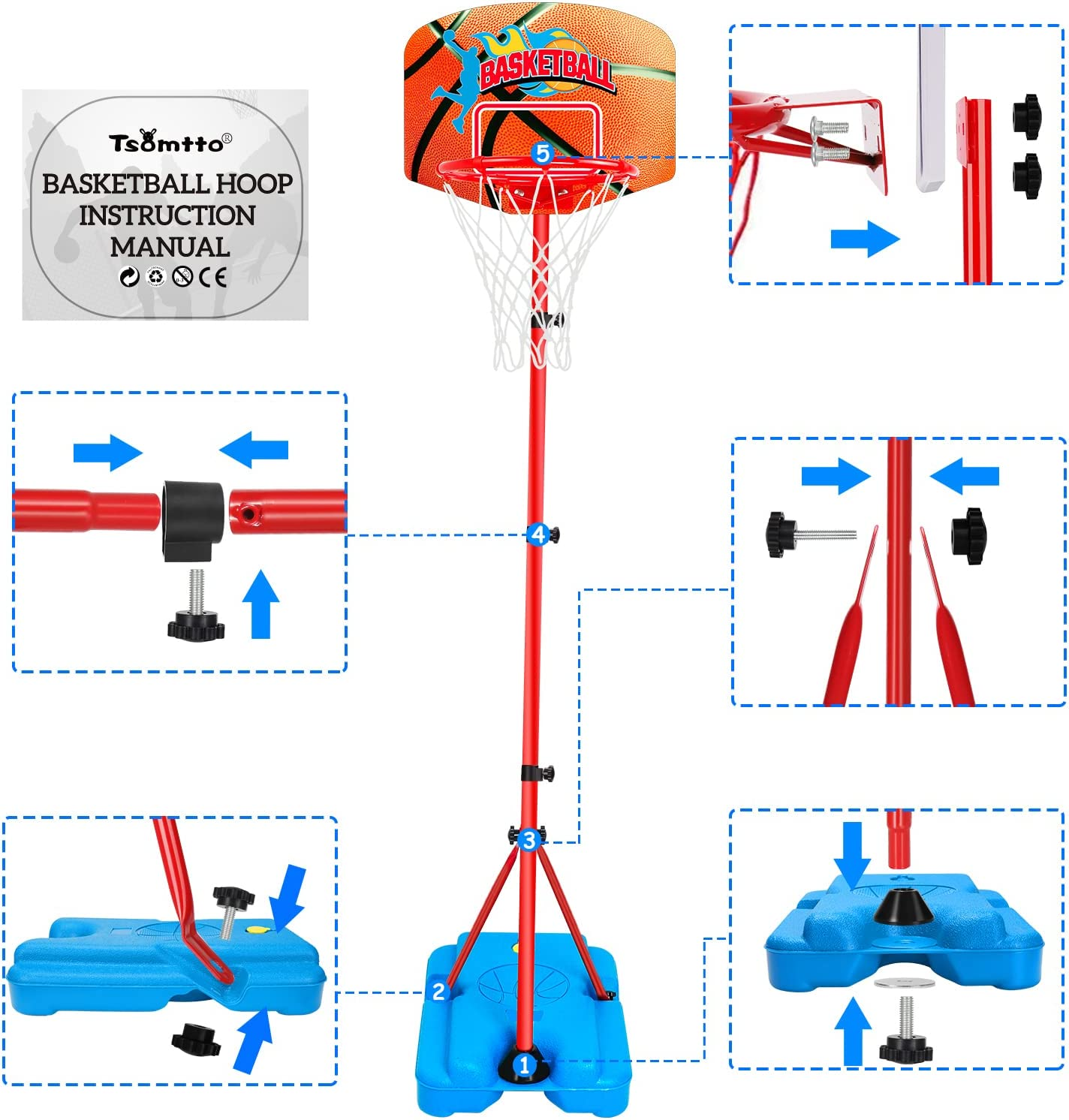 Toddler Basketball Hoop Stand Adjustable Height 2.5 Ft -6.2 Ft Mini Indoor Baske
