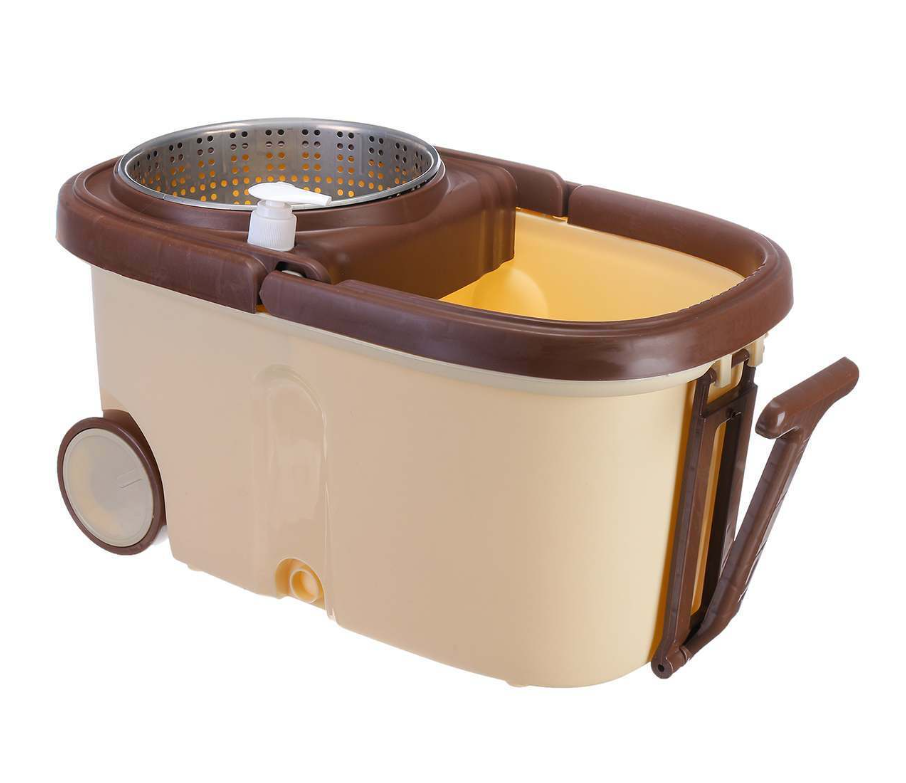 US 360° Rotating Floor Mop Bucket Set wheel with 2 Microfiber Head Cleaning Tool