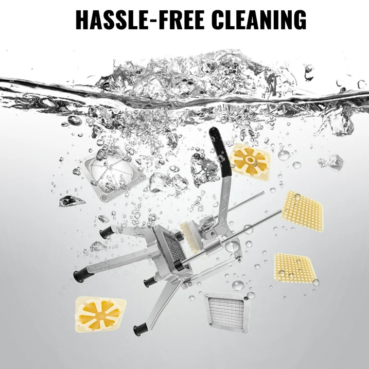 • 【GOOD STABILITY  EASY CLEANING】- The four non-slip feet of the potato dicer are wear-proof, solid, shock-absorbing, non-slip, and odorless, which ensures stability and performance during operation. The blades and push block are both removable and washable, easy to clean and maintain.