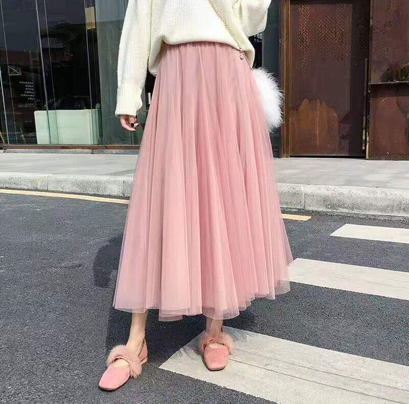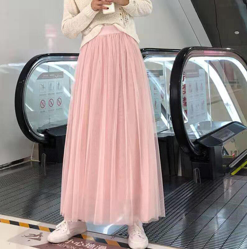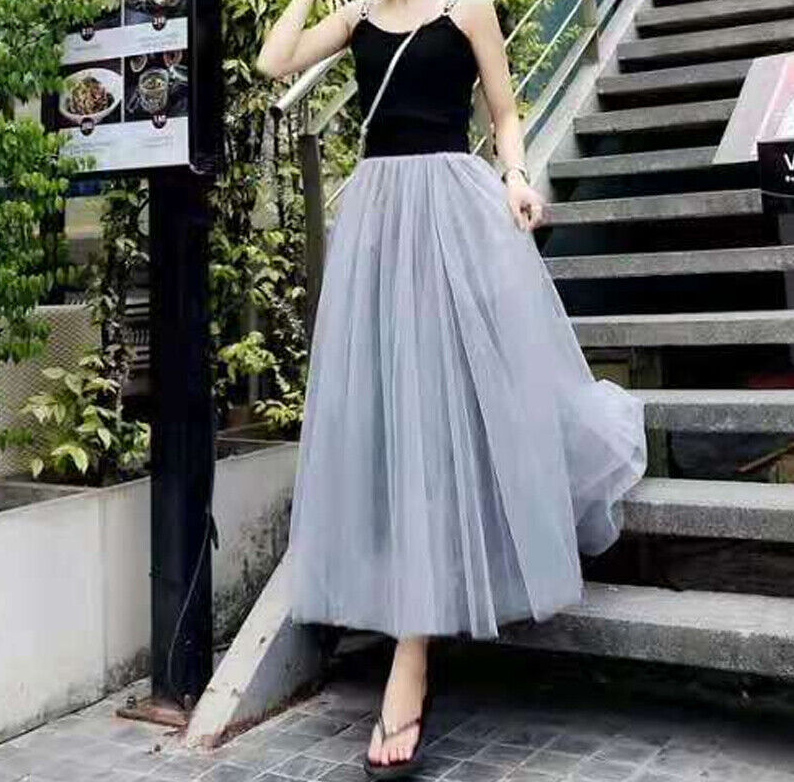 Women Tulle Skirt Elastic Pleated High Waist Layers Maxi Long Dress Fashion